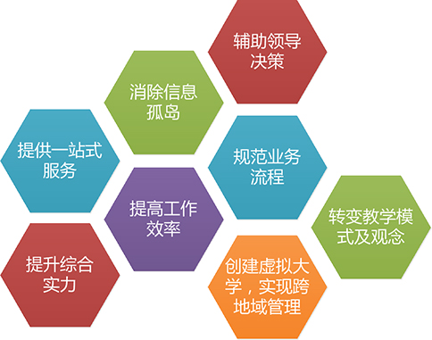 构建囊括全日制教育、继续教育和成人培训等在内的综合教学管理的数字化环境,科学统一的配置教学资源,提高教师、教室、实训室等教学资源的利用率,改革教学模式、手段与方法,丰富教学资源,提高教学效率与质量。